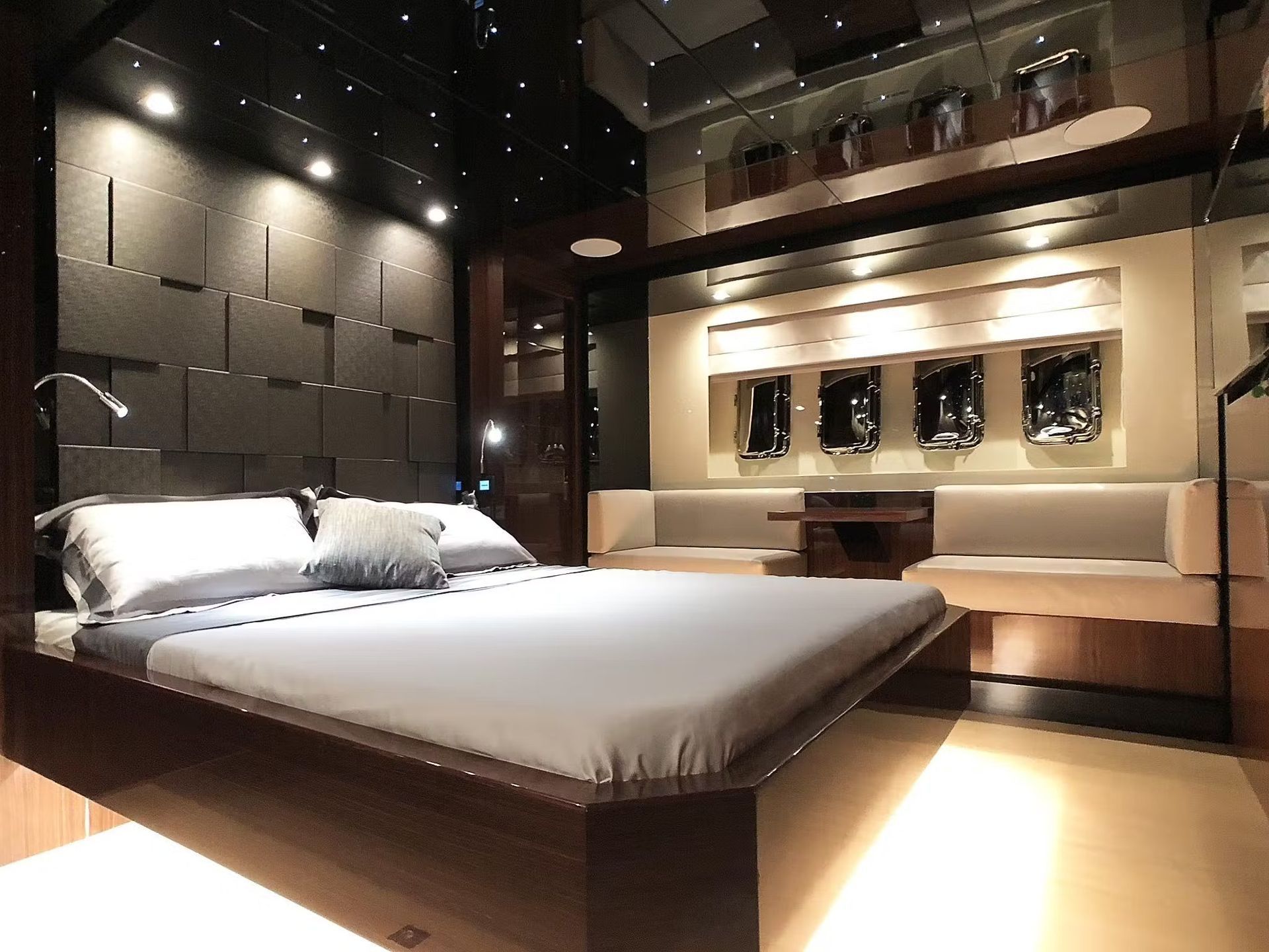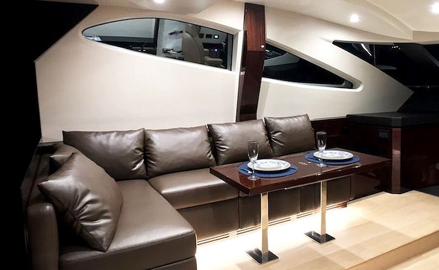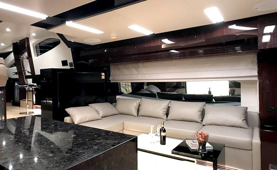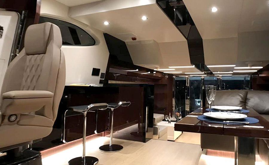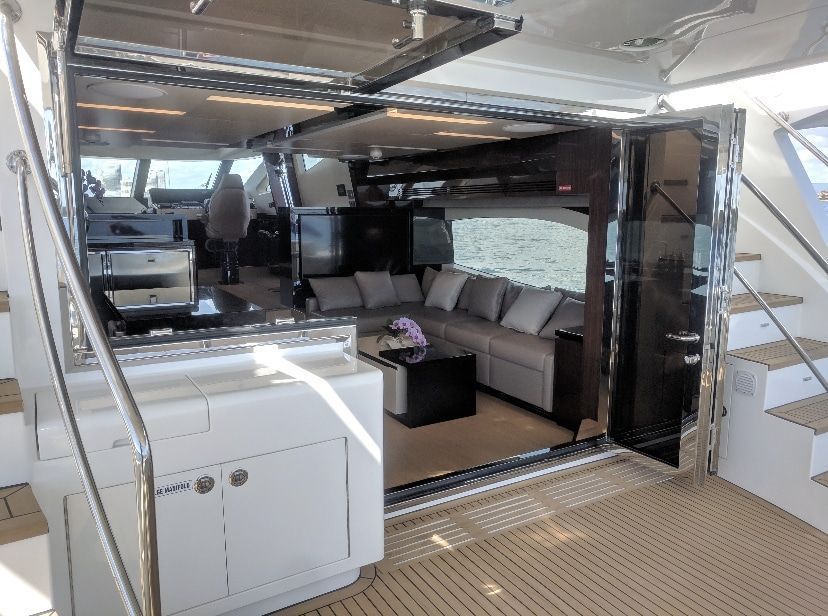 AVA is an 80ft sports yacht that is perfect for day or evening charters and will impress with its luxury finishes. This Yacht boasts an open flybridge, ample seating, a daybed and a cockpit area. Walk around the decks with more seating and a daybed on the bow. The lounge area is luxurious and has a galley with lots of refrigeration.