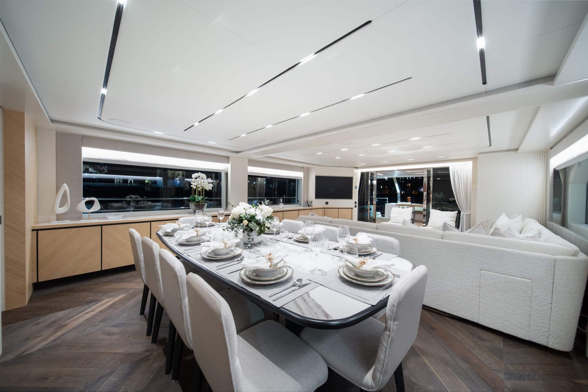 Crafted by Gulf Craft, a renowned shipbuilder in 2023, BLUESTONE is a true masterpiece of design, elegance, and comfort. This magnificent vessel offers an unparalleled chartering experience with its sleek exterior and lavish interiors.
