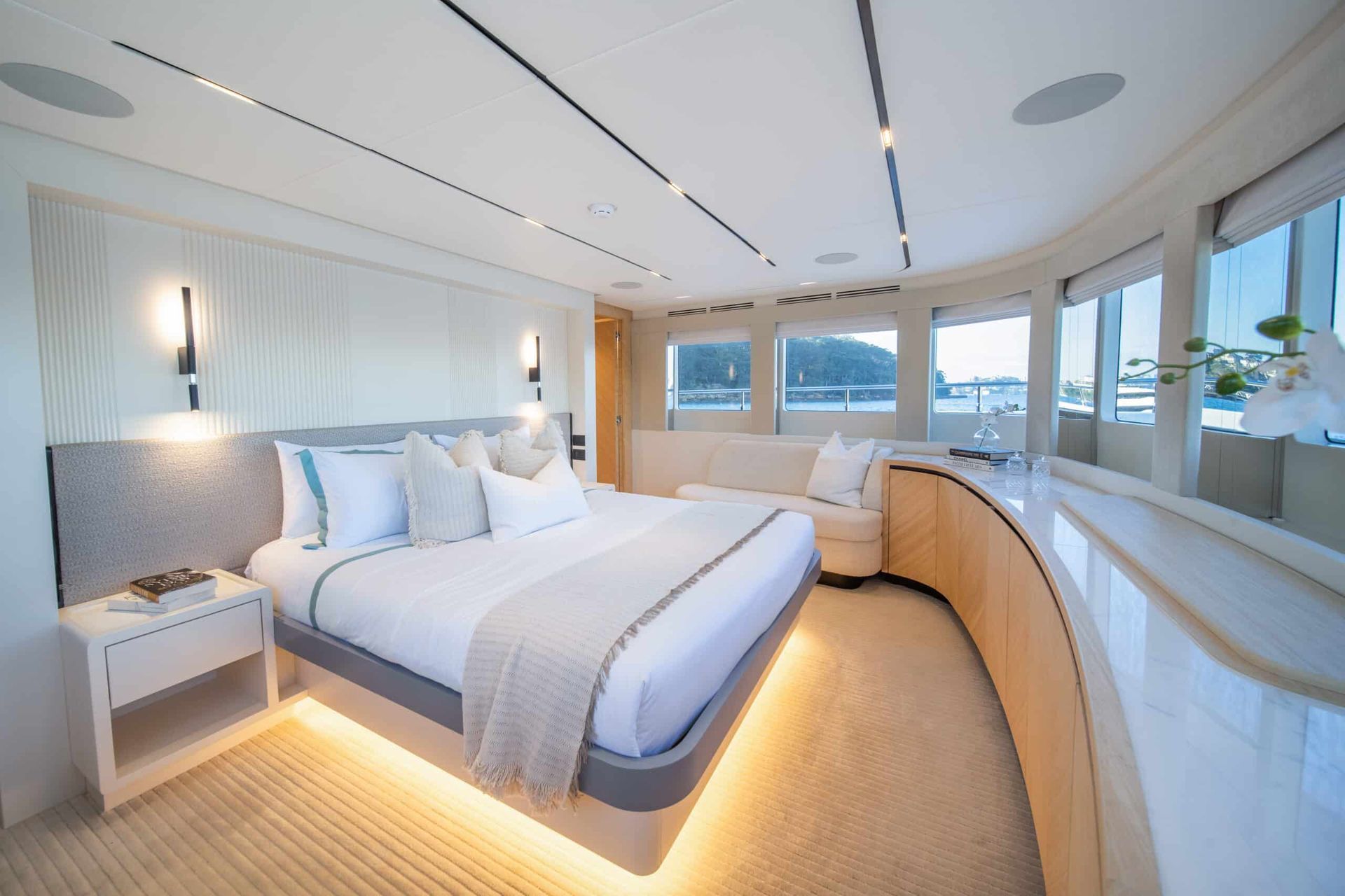 Step aboard the luxurious yacht BLUESTONE and embark on an unforgettable voyage through the stunning waters of Sydney Harbour. Crafted by Gulf Craft, a renowned shipbuilder in 2023, BLUESTONE is a true masterpiece of design, elegance, and comfort. This magnificent vessel offers an unparalleled chartering experience with its sleek exterior and lavish interiors.
