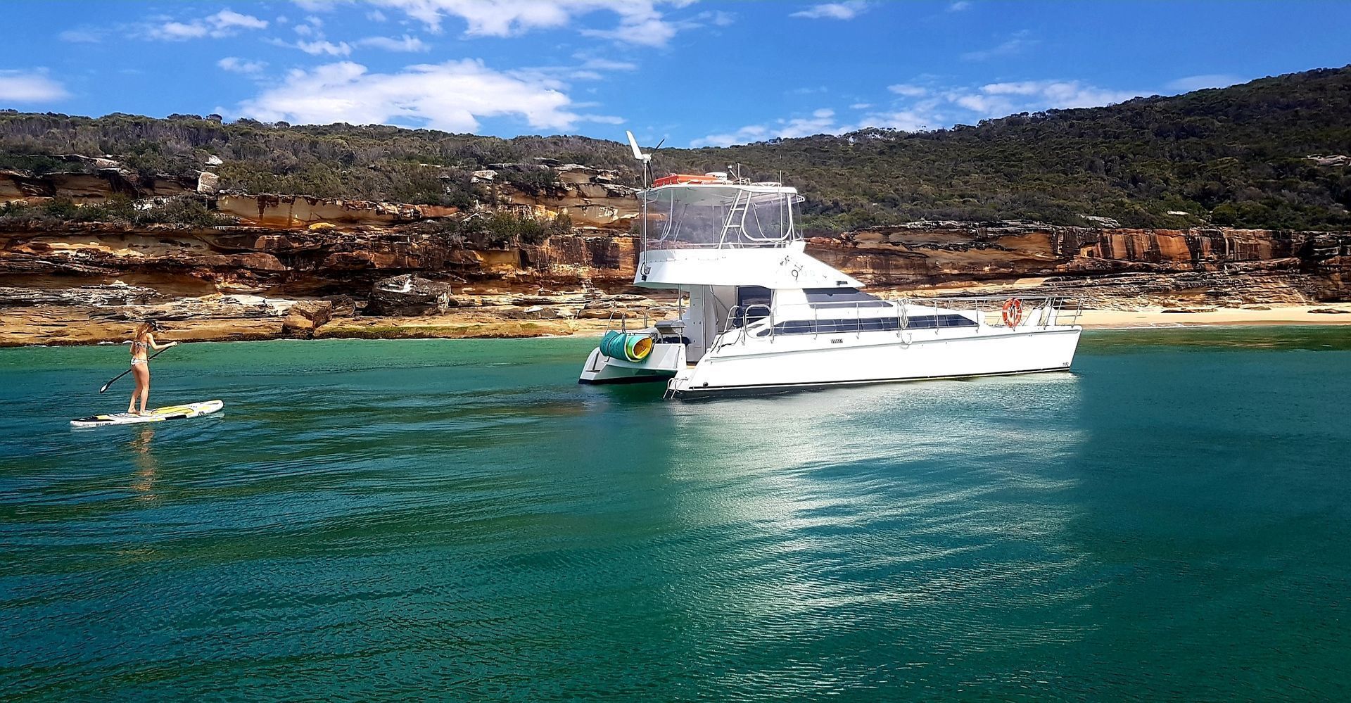 Explore the magnificent Sydney Harbour aboard Cloud 9! A sumptuous power catamaran with three double cabins, an attractive timber fit-out, generous living space, and modern lines, Cloud 9 is a trendy way to explore Sydney’s hidden beaches.