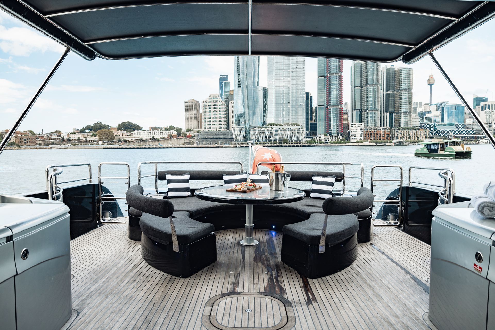 The open-plan galley lets guests enjoy the private chef’s expertise while relaxing on the large leather lounge. Four luxurious bedrooms, Three full bathrooms and One huge bow daybed provide 360-degree views of Sydney and its Harbour.