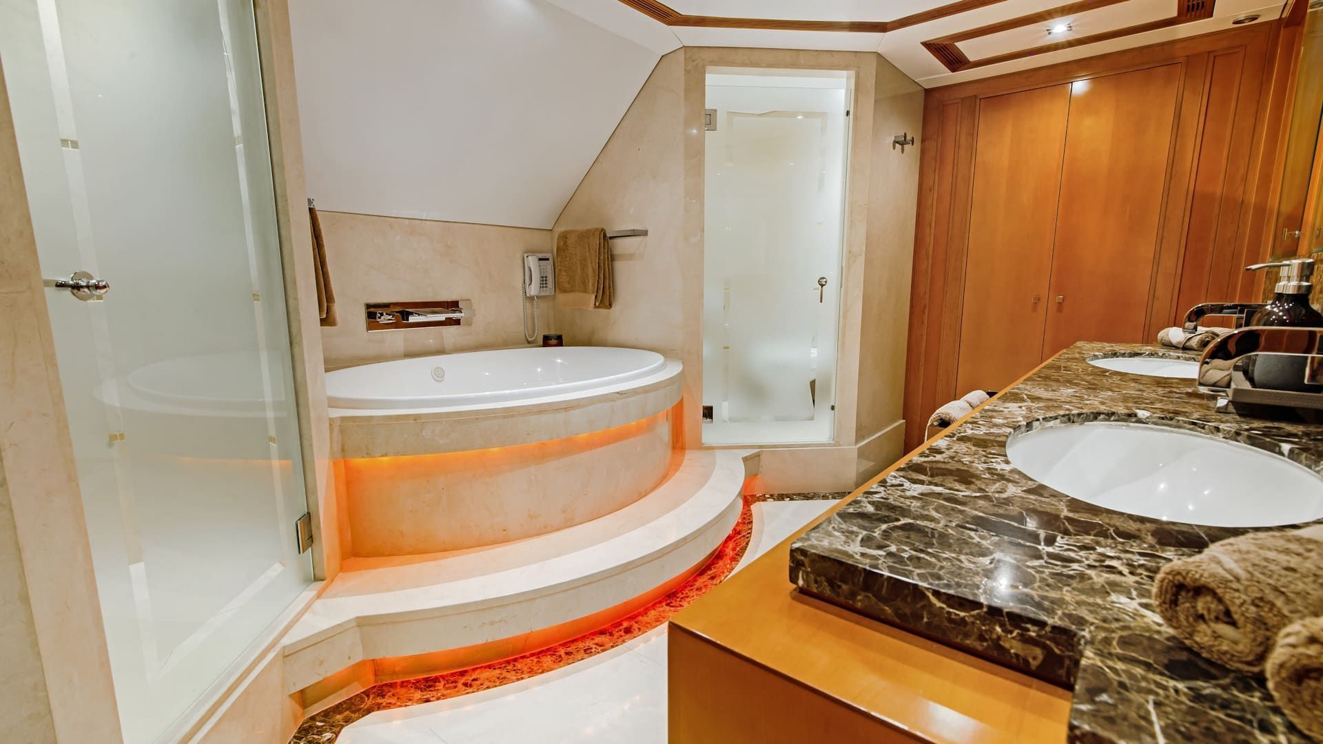 - 5 staterooms each with ensuite offering superior comfort and relaxation. Each stateroom is equipped with deluxe natural