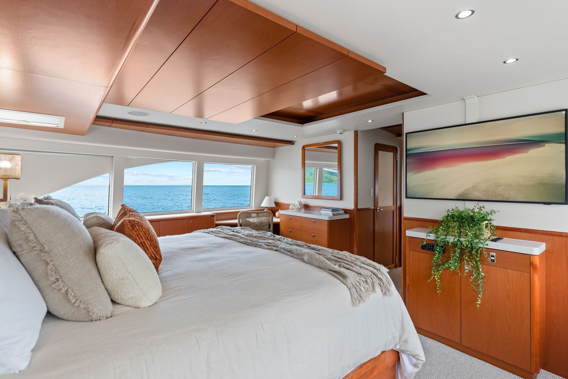 - 4 guest suites, including 1 main deck master stateroom, 1 Queen VIP stateroom & 2 Queen suites each with their own ensuite