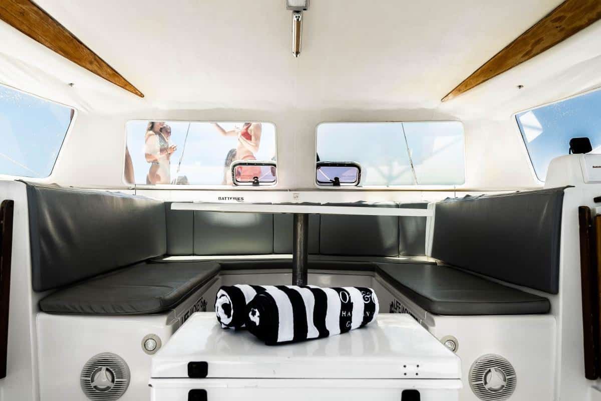 Serrano is a 1000 Catamaran, 10m x 6m with covered indoor area and a large outdoor entertaining area. Serrano's fantastic indoor/outdoor entertaining area is built for entertaining- perfect for all occasions including birthday celebrations, hens and bucks parties or family days out.