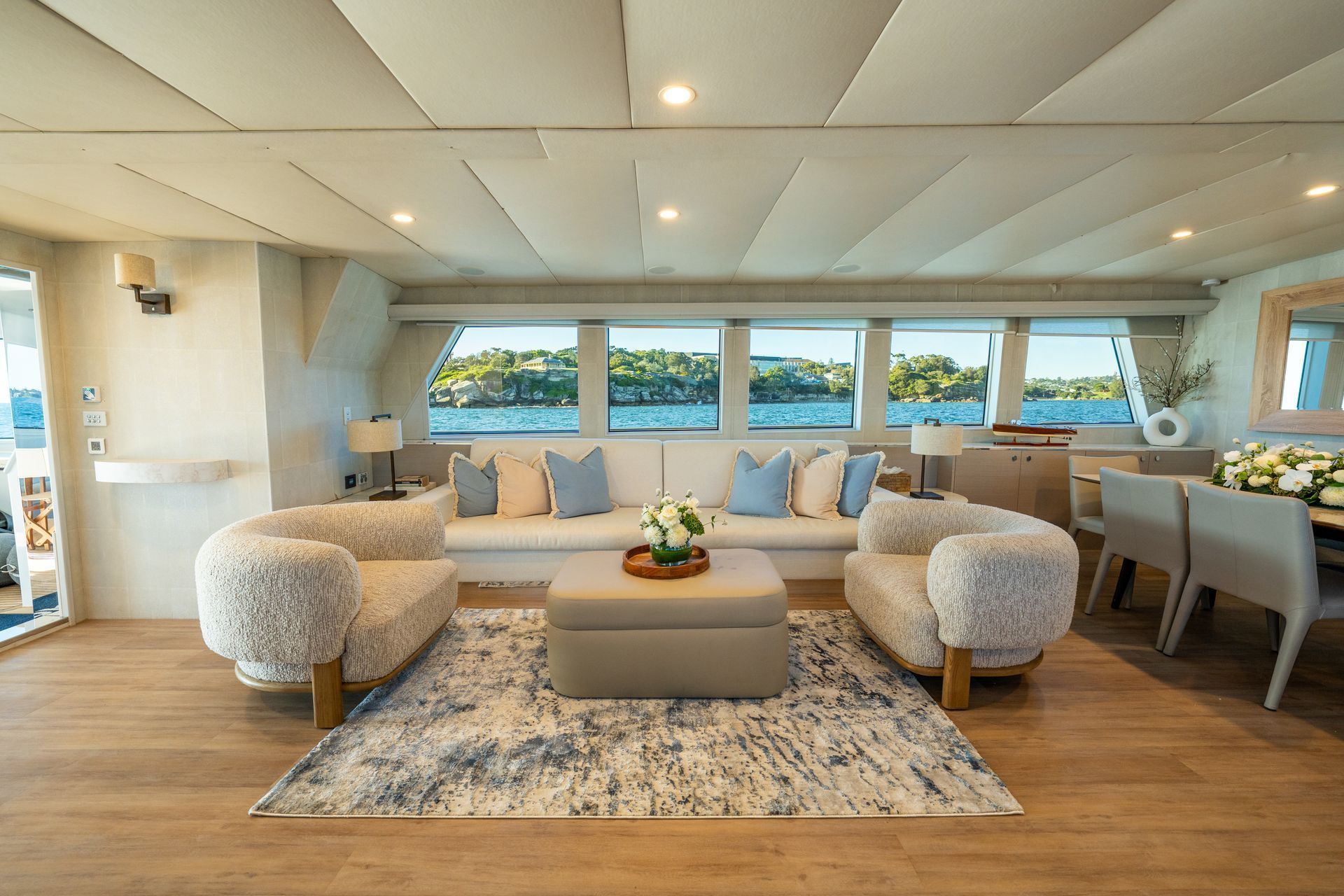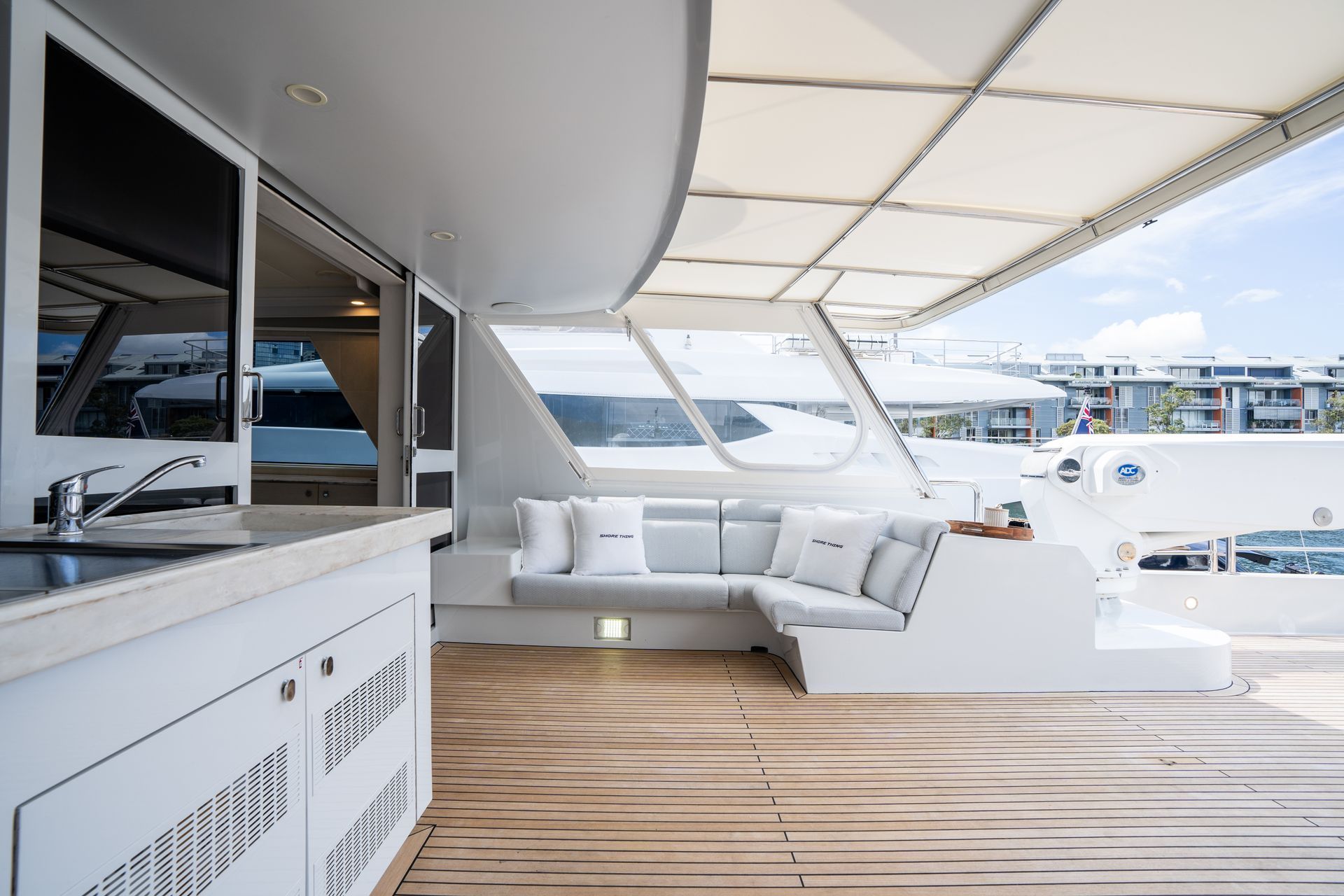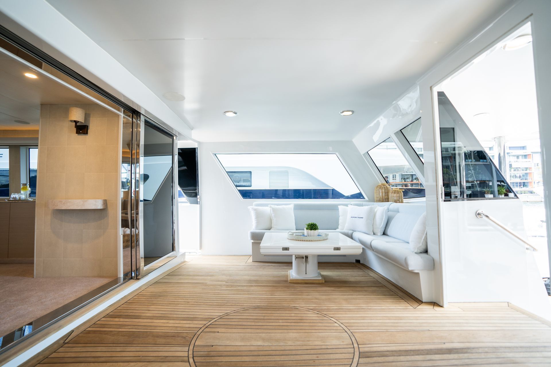 One of the key features of Shore Thing is her ample space. With four sumptuous guest suites, the yacht can comfortably accommodate up to eight overnight guests. Thanks to her generous size, Shore Thing can host up to 70 guests for events and celebrations. Whether it's for a corporate event, a family gathering, or a birthday party that you're looking to host, Shore Thing is an ideal venue