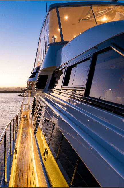 Sovereign Lady is a 75ft Monte Fino vessel that charters the stunning waters of Moreton Bay. Sovereign Lady has spacious living and relaxation areas, with a beautiful entertaining deck, and her crew have unparalleled knowledge of yachting destinations in Southeast Queensland.