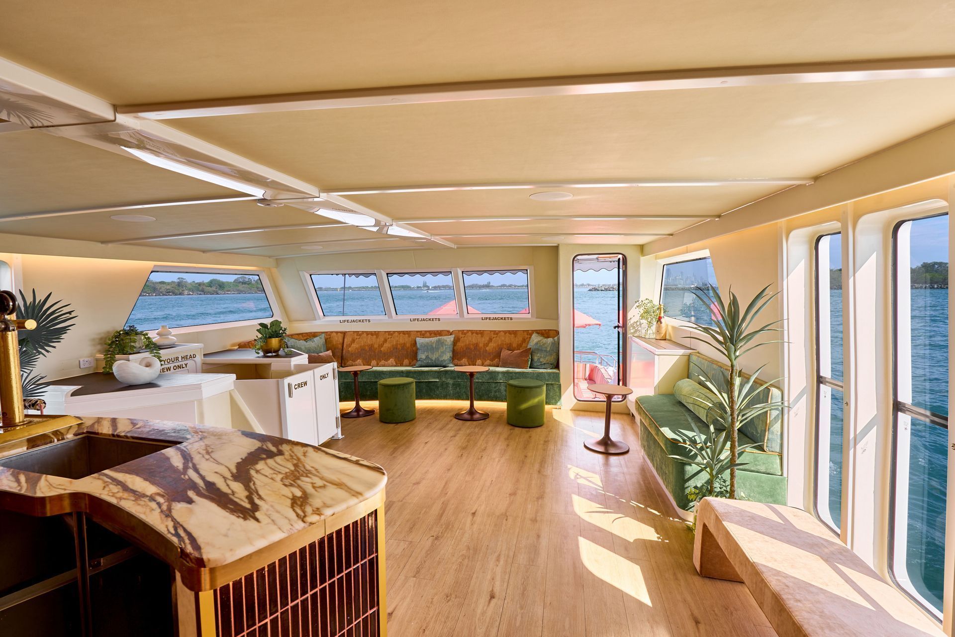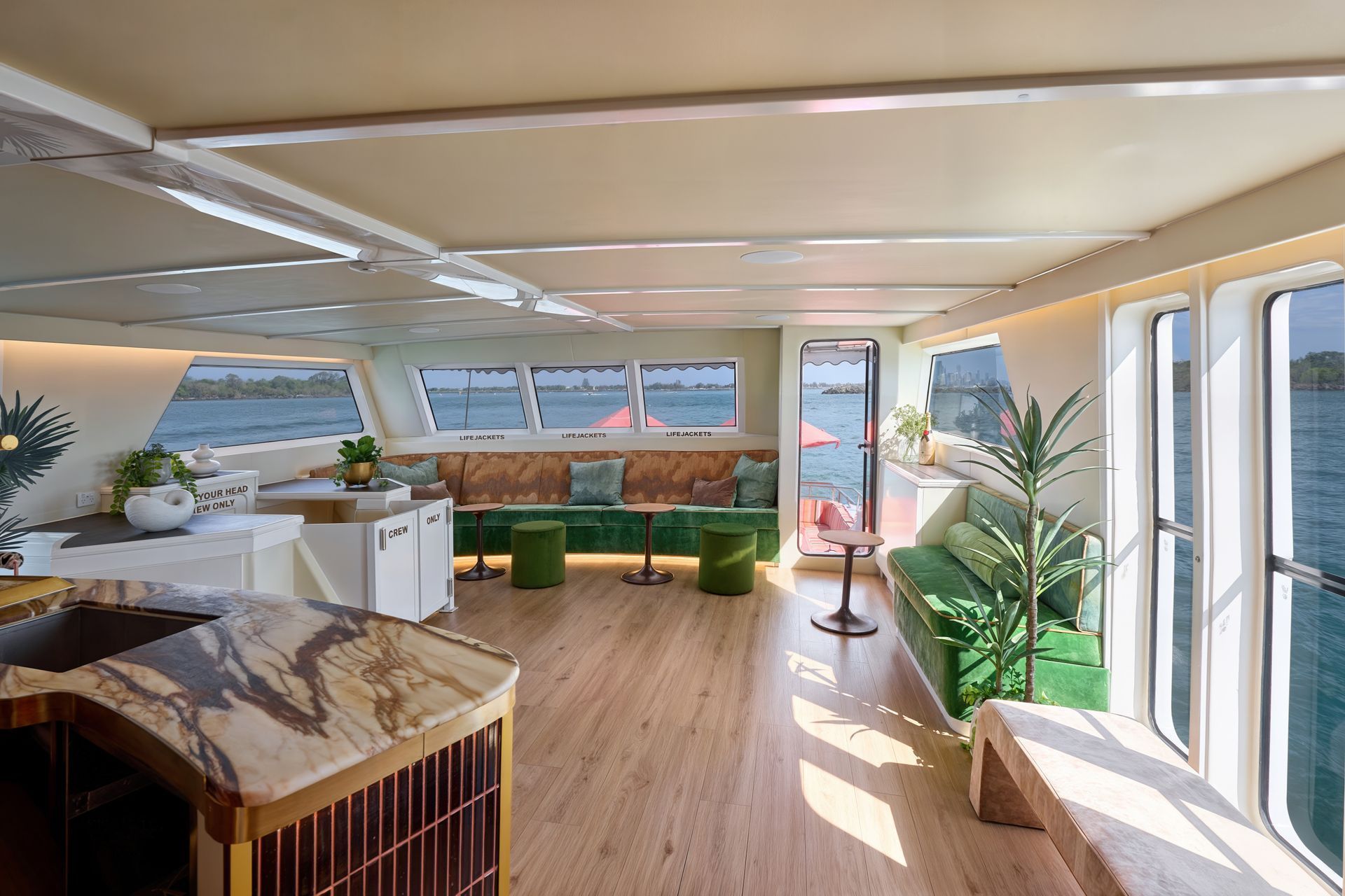 With one of the largest passenger capacities on the harbour, YOT Viva offers flexible entertaining spaces for every occasion — where guests can move effortlessly between indoor and outdoor areas, and access full walkaround side decks, with the Harbour City serving up the views.