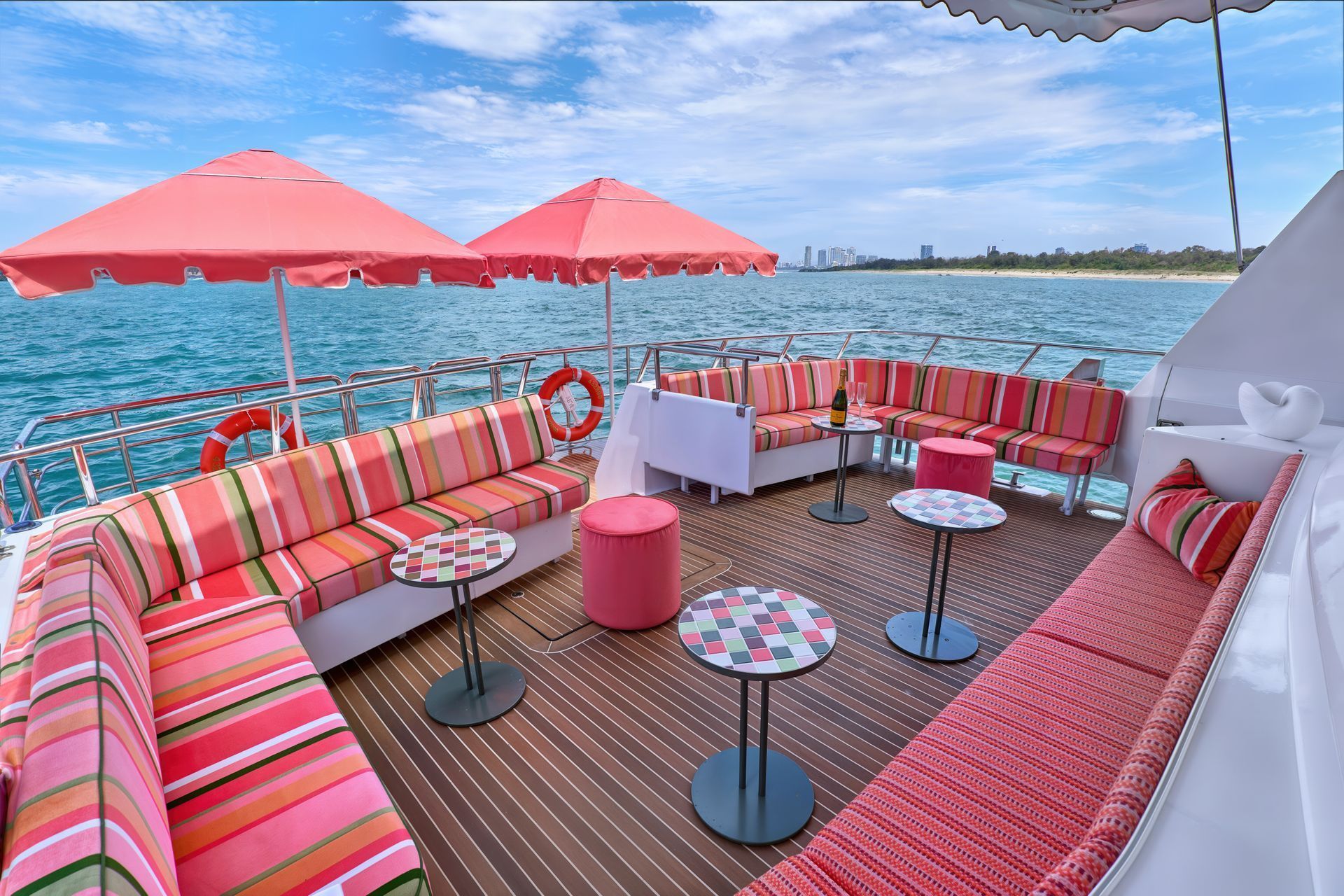 YOT Viva is your VIP lounge on the move — mixologist ready, DJ loaded, chef prepped, crew dialled in — all backed by the YOT Club team’s signature style of hospitality reimagined, contact Club Nautical today to secure your booking.